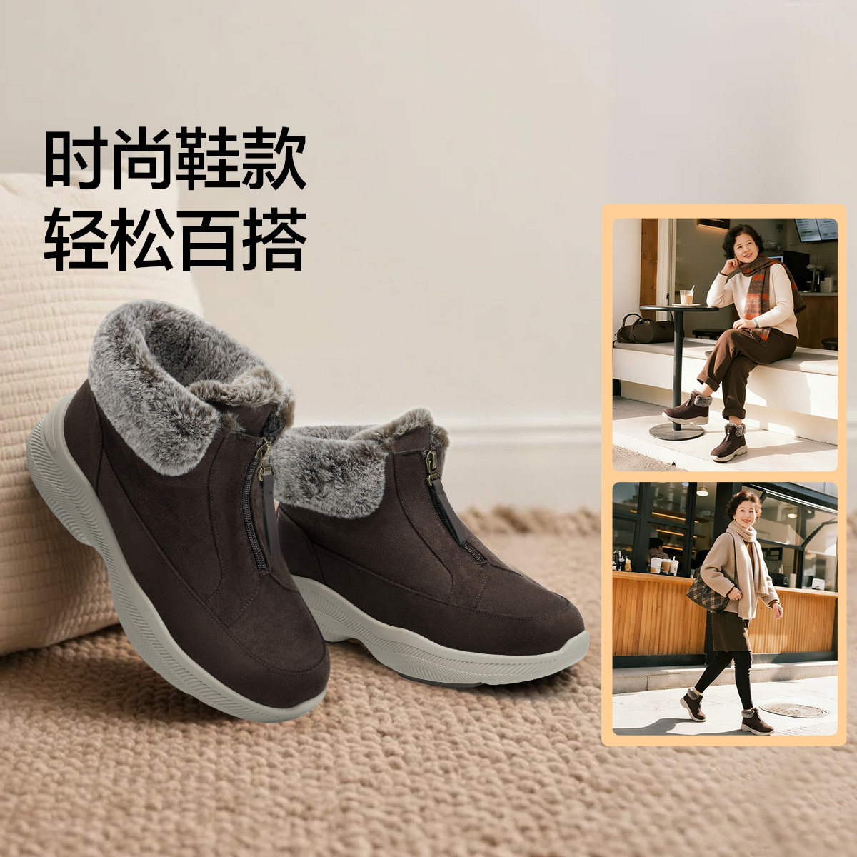 冬日孝心好礼!足力健雪地靴,轻便舒适久走不累,加绒保暖陪长辈温暖过冬