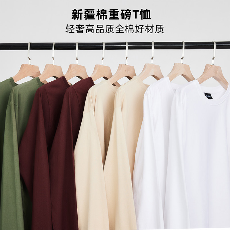2026秋冬新款潮牌230g纯棉纯色打底衫男女长袖白t恤宽松圆领上衣