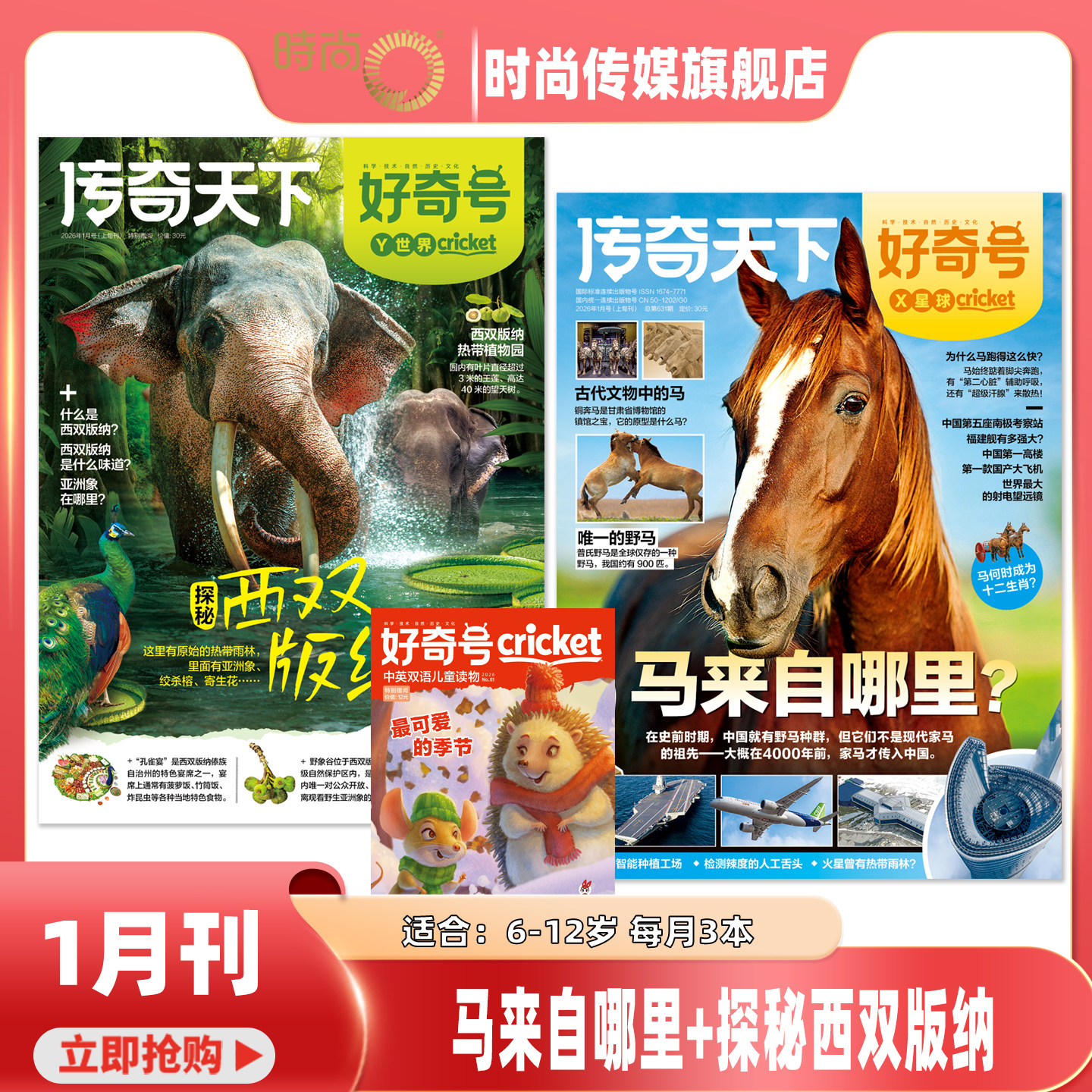 经典少儿科学杂志,儿童科普期刊,传奇天下,好奇号1月新刊,山西古建筑+鲨鱼大百科,动物的性别+水城威尼斯,机器人来了+探索森林,重返月球+瓷器大历史,寻找火星生命+斗牛王国,乐乐趣揭秘海洋恐龙儿童绘本,16开大版本,共3本,中小学生寒假开学季必读课外读物。