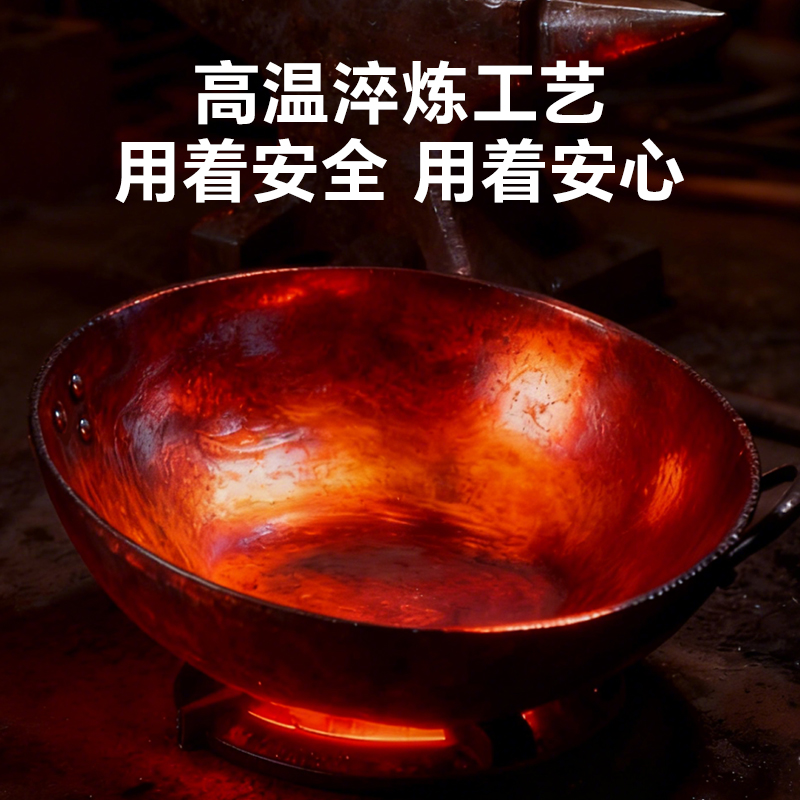 【章丘铁锅+锅盖】加深设计,0涂层,物理防粘,经久耐用,正宗的章丘老铁锅!!精铁打造!!4重提炼,12道工序,36000次手工捶打,1300°高温烧制!!【赠运费险】