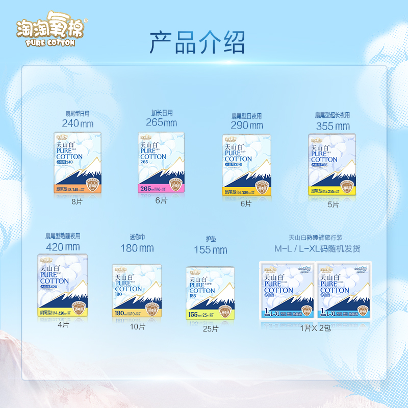 【任选6包】淘淘氧棉天山白小扇尾消毒级纯棉卫生巾安睡裤组合