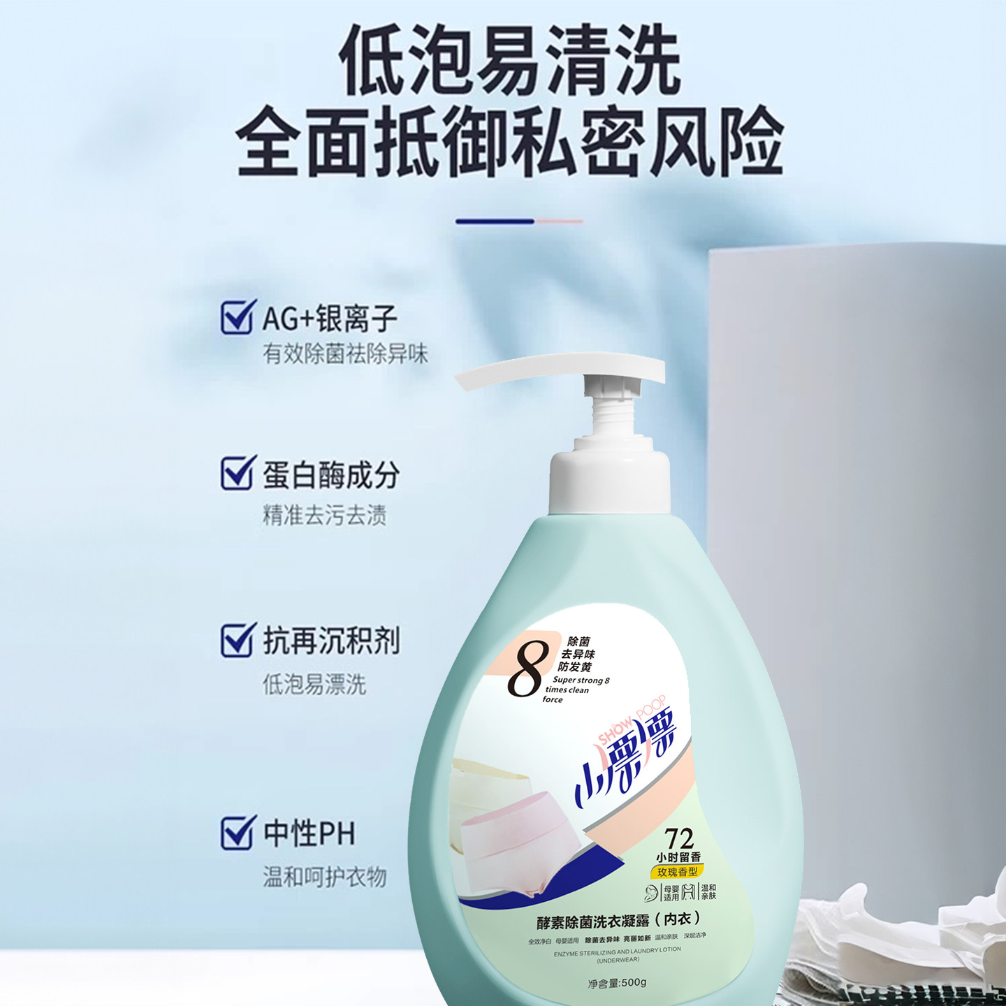 小漂漂酵素液除菌除螨玫瑰香去渍内衣洗衣液500g