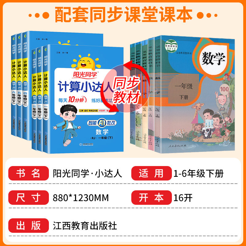 阳光同学计算小达人一二年级三年级四五六年级上册下册人教版江苏教北师大小学数学思维计算专项强化训练口算题卡应用题天天练习册