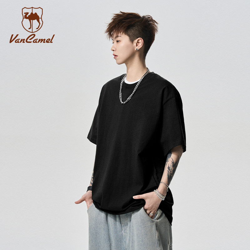 VANCAMEL/西域骆驼精梳纯棉T恤男女通用夏季新款舒适透气短袖上衣