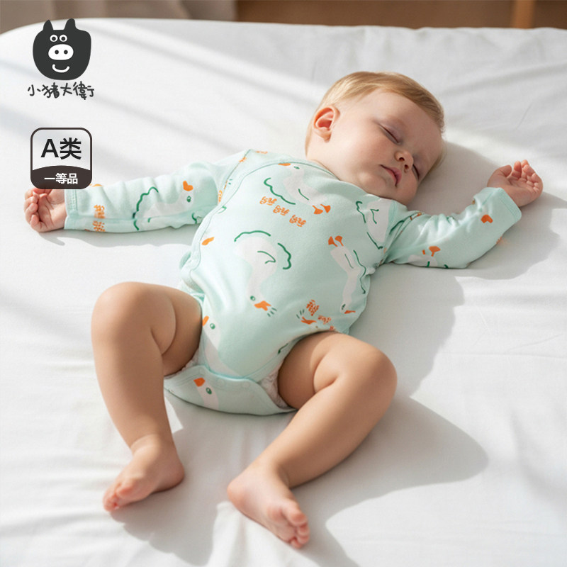 小猪大卫100%棉婴儿包屁衣春秋男女新生宝宝卡通印花长袖三角哈衣