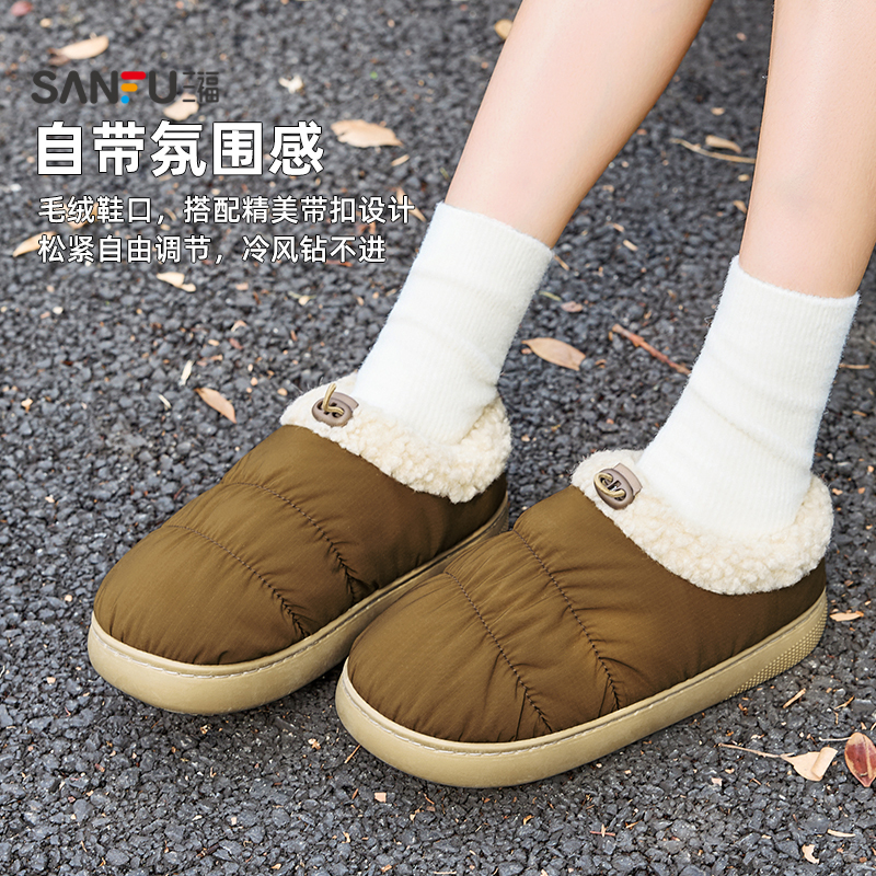 大漏速凑!早买早享受!三福云朵加绒外穿棉拖鞋室内家居保暖毛绒外穿包跟拖鞋冬季2025新款!