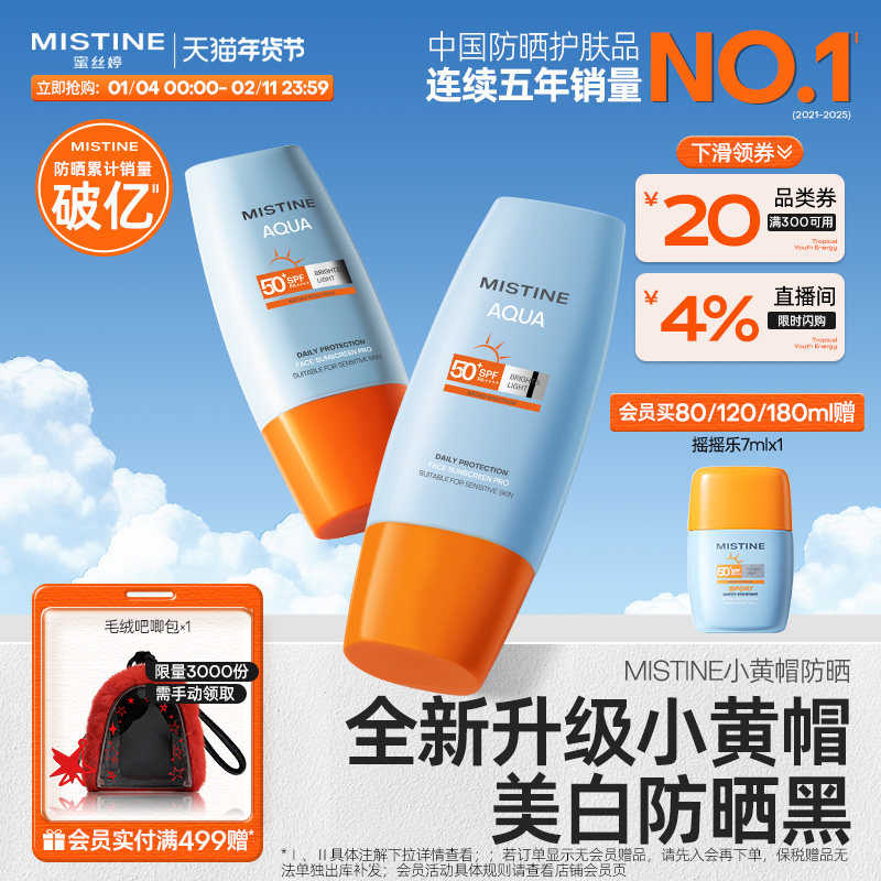【蜜丝婷小黄帽防嗮霜拍2件到手80ml!淘金币加购88vip下单叠加国际惊喜卷+消费卷200-25凑单到手更便宜22元1支,活动速抢手慢无!赠:入会送赴山海钥匙扣+冰凉贴】泰版小黄帽防晒乳,防晒ACE,防晒指数SPF50+,高倍持久,长效严防,清爽不油腻,出汗也不怕的!入会更有好礼赠送!