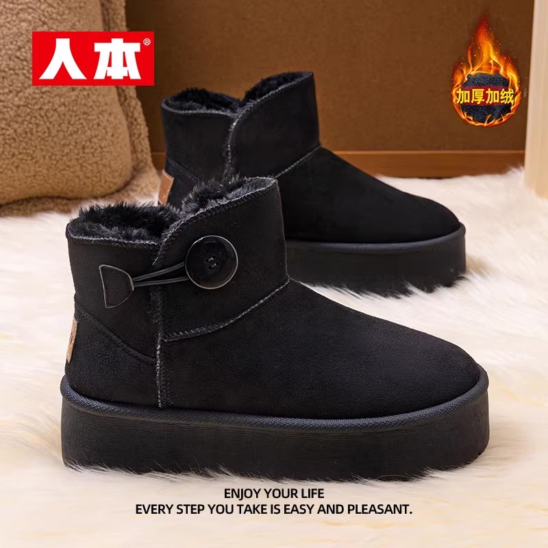 人本雪地靴女款2025新款女鞋冬季加绒加厚保暖鞋子厚底增高棉鞋女