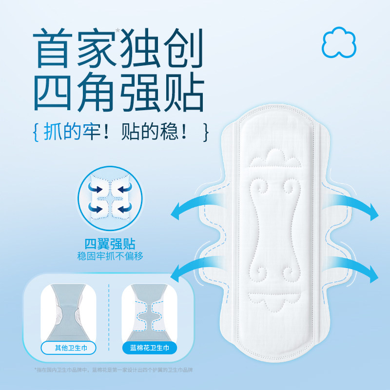 蓝棉花小新翼医护级卫生巾,四角翼日夜用姨妈巾超薄官方旗舰正品