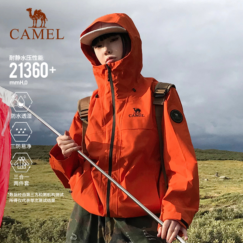骆驼冲锋衣男女三合一雨神2.0版红色外套冬2025新款防水登山服装