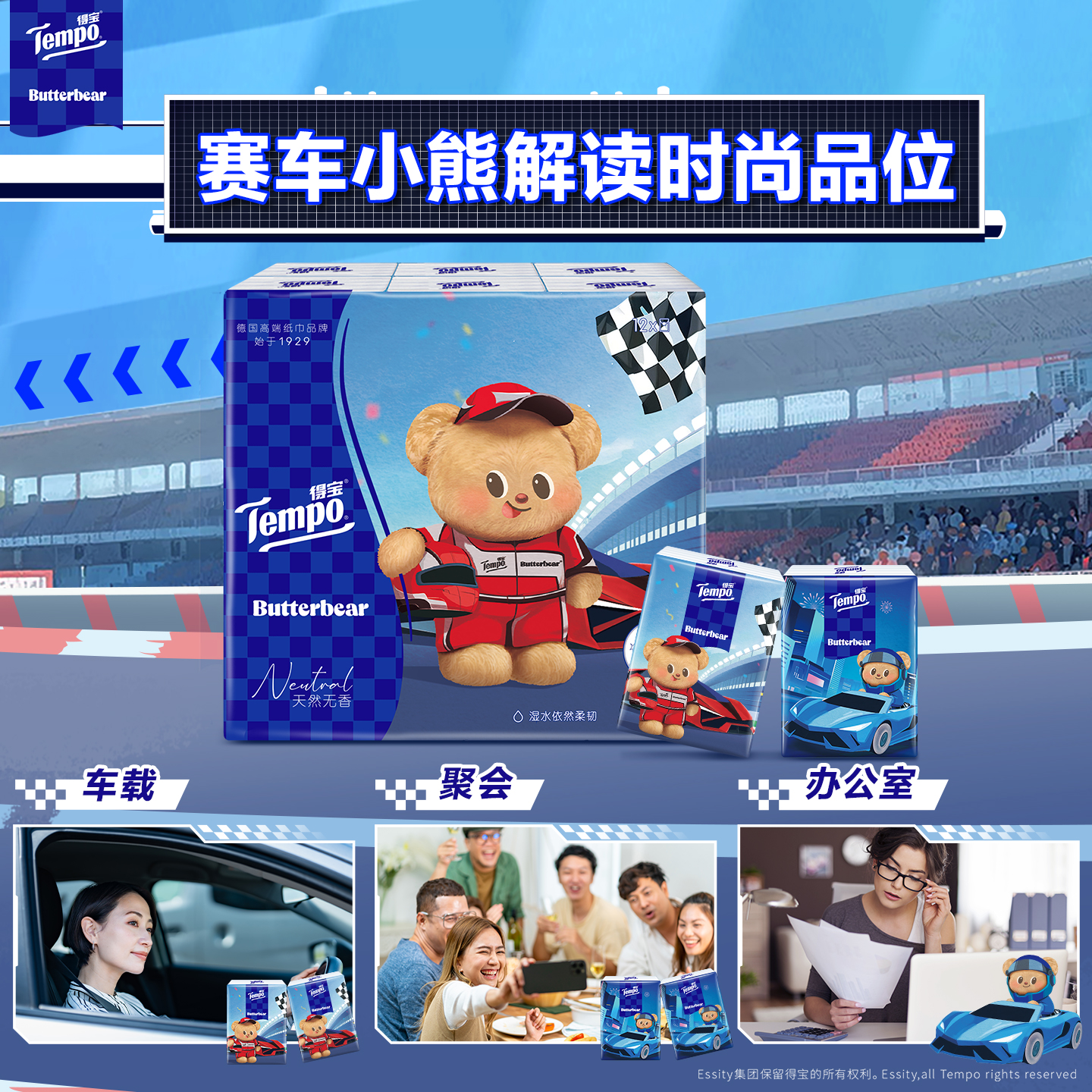 新品tempo得宝黄油小熊赛车对半撕手帕纸4层加厚36包K