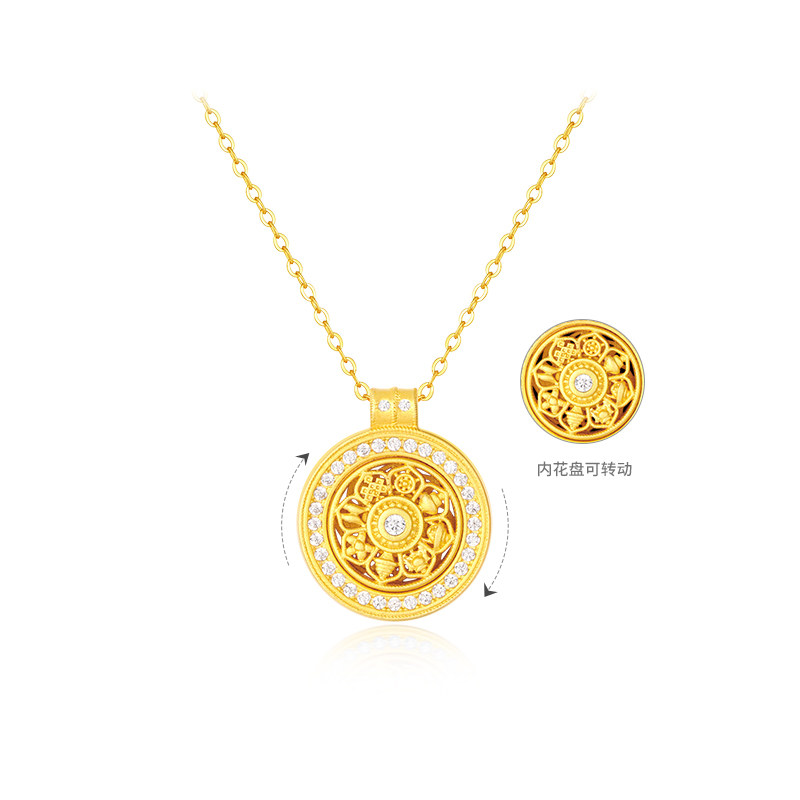 周大生八宝罗盘项链女S925纯银毛衣配饰新中式国风吊坠本命年礼物