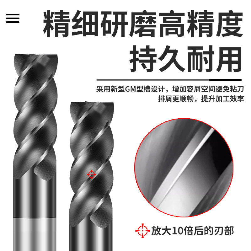 恒猛70度高硬钨钢铣刀四4刃合金加长U槽数控加工不锈钢开粗平底刀