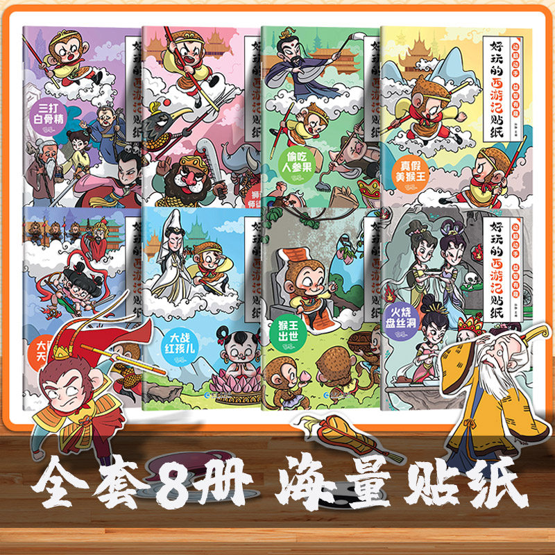 3-6岁宝宝益智好物!全8册《好玩的西游记贴纸》绘本,趣味贴画训练专注力,早教启蒙必备。