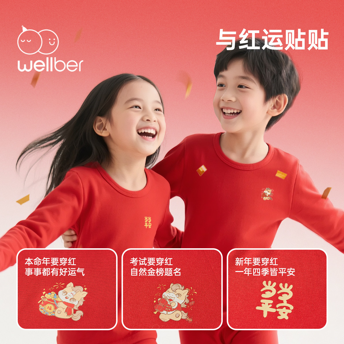 【19.9】,威尔贝鲁成人儿童本命年红色保暖内衣套装纯棉新年中大童秋衣秋裤
