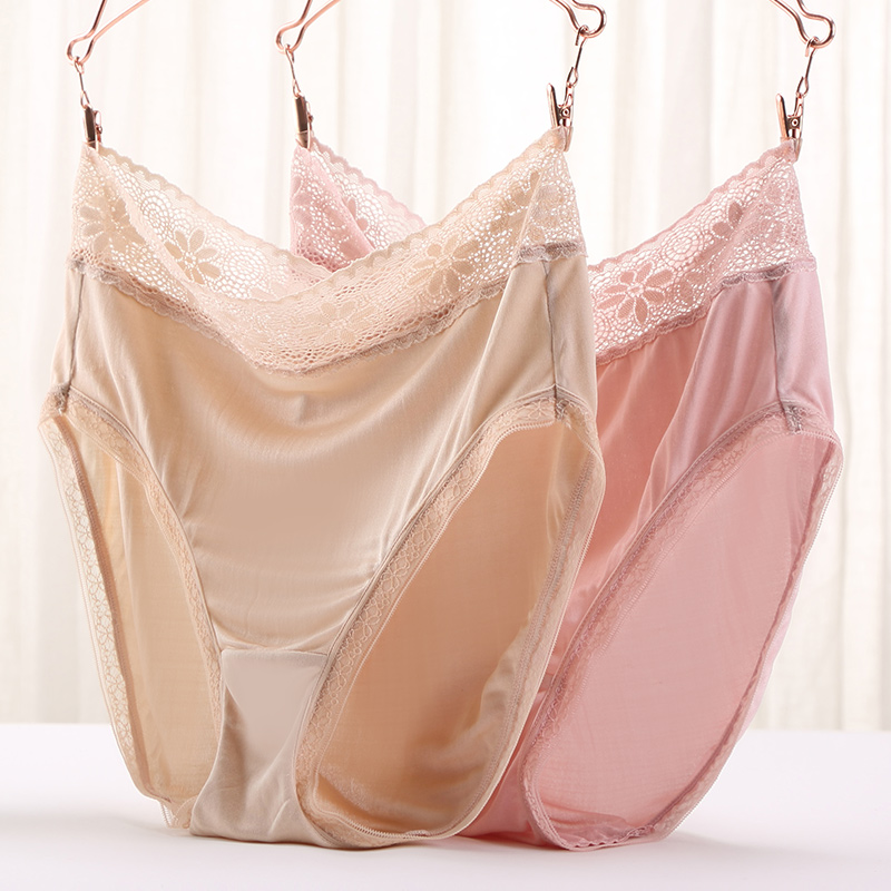 金三塔真丝高腰内裤桑蚕丝蕾丝舒适透气亲肤纯色内衣女三角裤新品