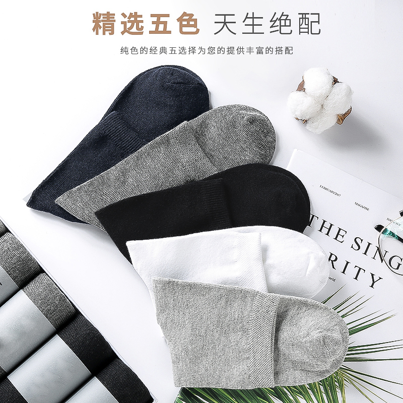 阿诗玛袜子男中筒棉袜春夏吸汗透气长短袜黑色运动船袜男士四季款