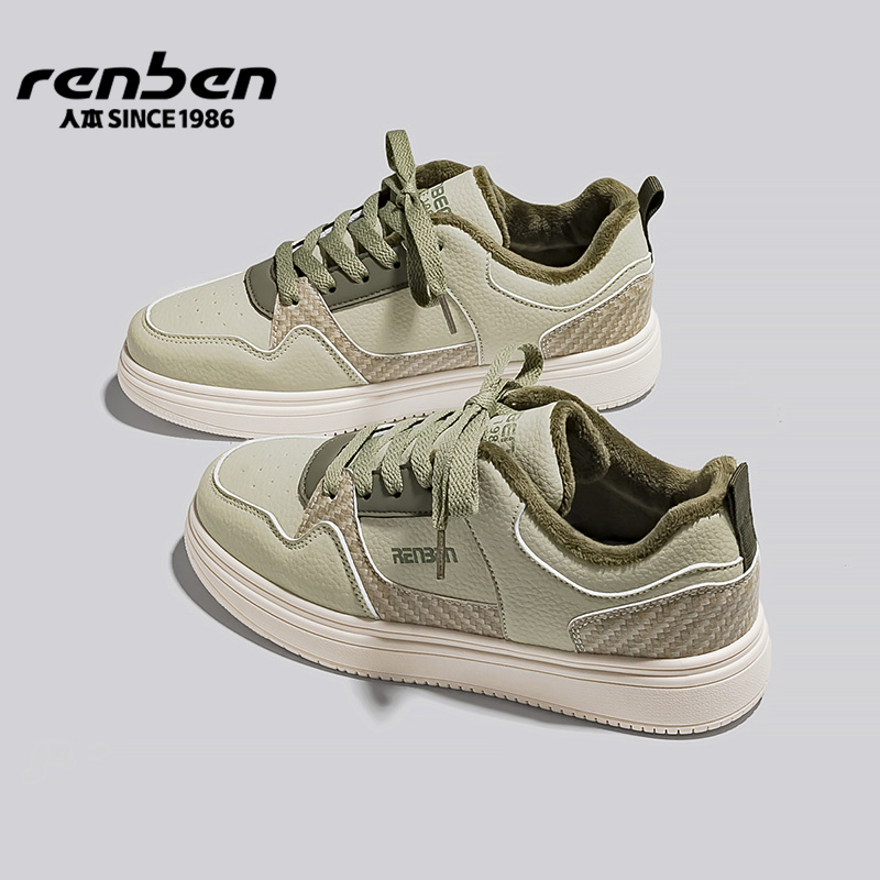人本女鞋2025冬季新款轻便舒适防滑加绒加厚百搭潮流休闲板鞋