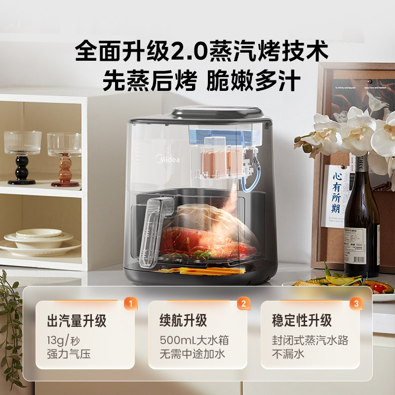 美的2026新款蒸汽炎烤空气炸锅,大容量蒸烤一体,智能控温,健康美味一步到位!家庭烘焙好帮手,现购享优惠价,品质之选!