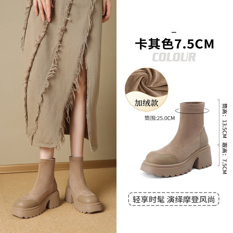 卓诗尼厚底马丁靴女骑士靴秋冬季新款粗跟英伦风时装靴加绒短靴