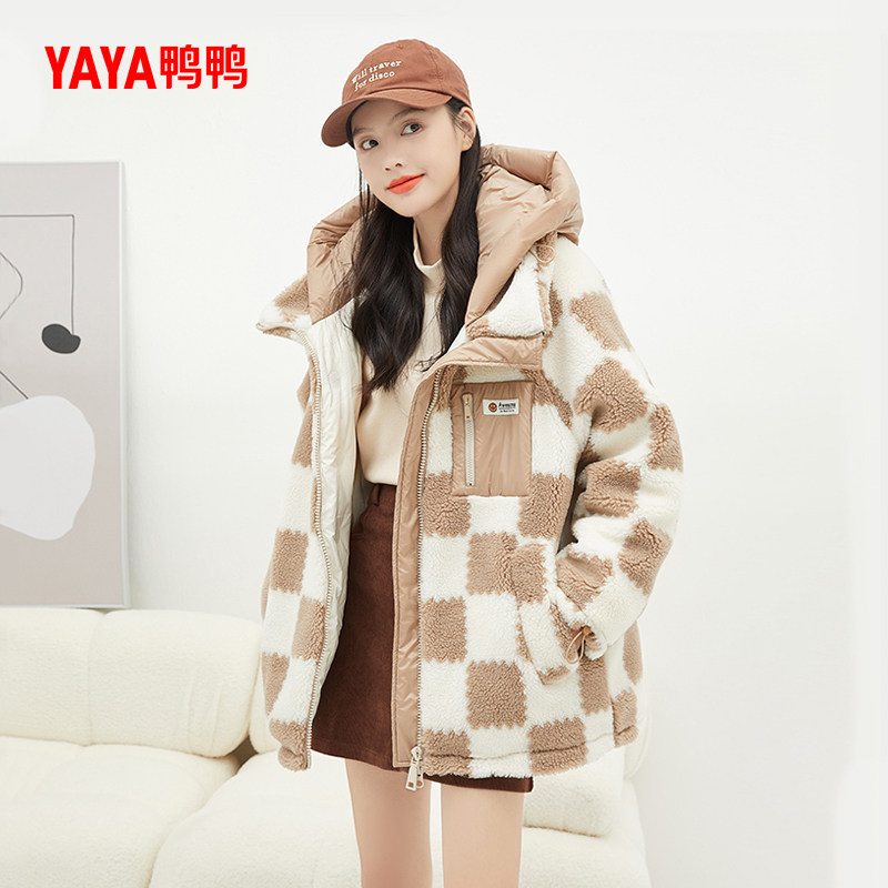 鸭鸭羽绒服女中长款2025新款冬季90鸭绒仿羊羔毛保暖小个子外套Y
