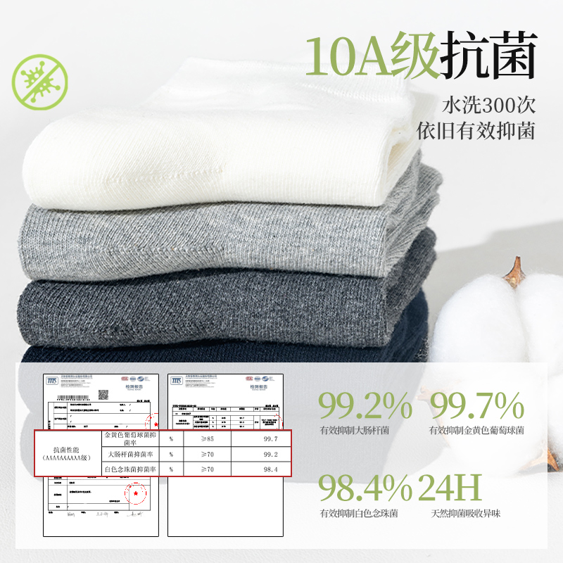 猫人纯棉袜子男秋冬10A抑菌防臭脚气运动吸汗透气。