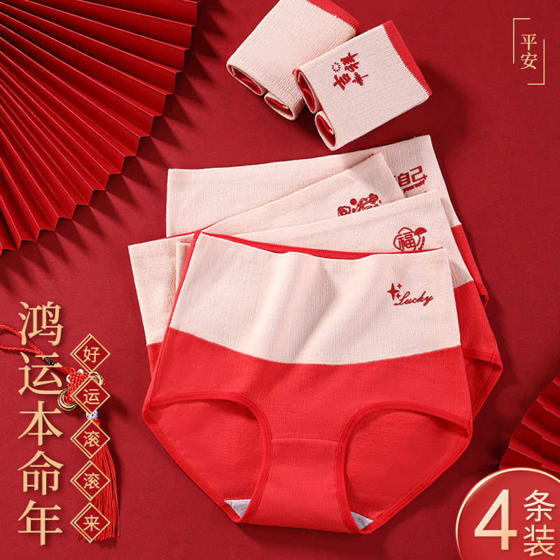 红色内裤结婚本命年女纯棉抗菌全棉裆新款中高腰女士透气三角短裤