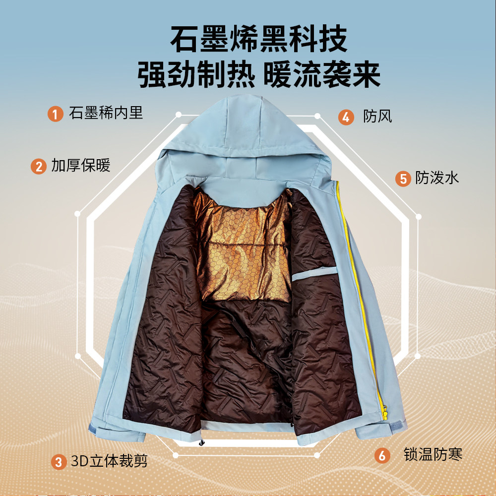 真维斯户外运动石墨烯冲锋衣外套男女冬棉夹克棉服情侣登山滑雪服