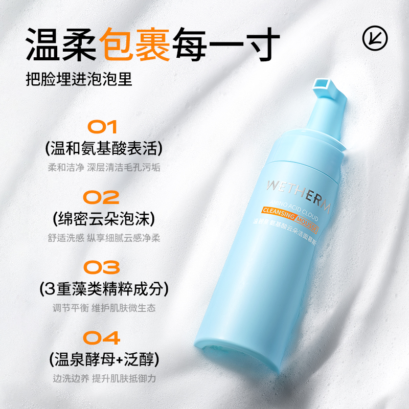 温碧泉氨基酸云朵洁面慕斯泡沫,深层清洁保湿温和润肤洗面奶正品