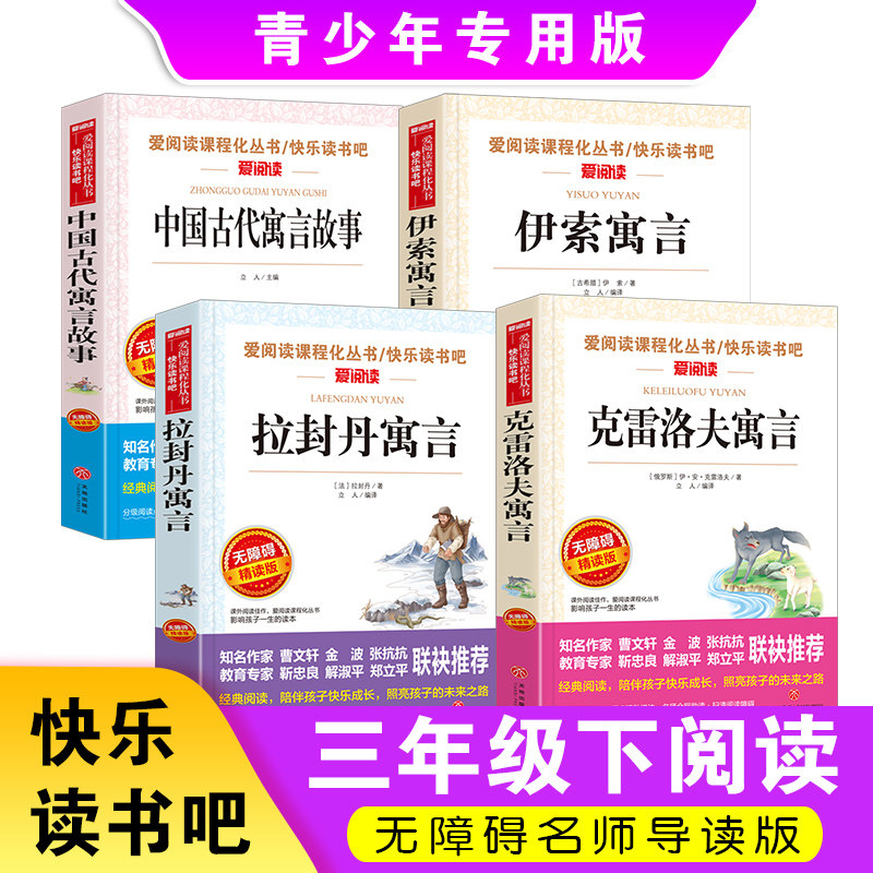 中国古代寓言故事三年级必读课外书下册快乐读书吧正版 老师推荐伊索寓言全套经典书目小学生3年级下学期阅读克雷洛夫拉封丹寓言