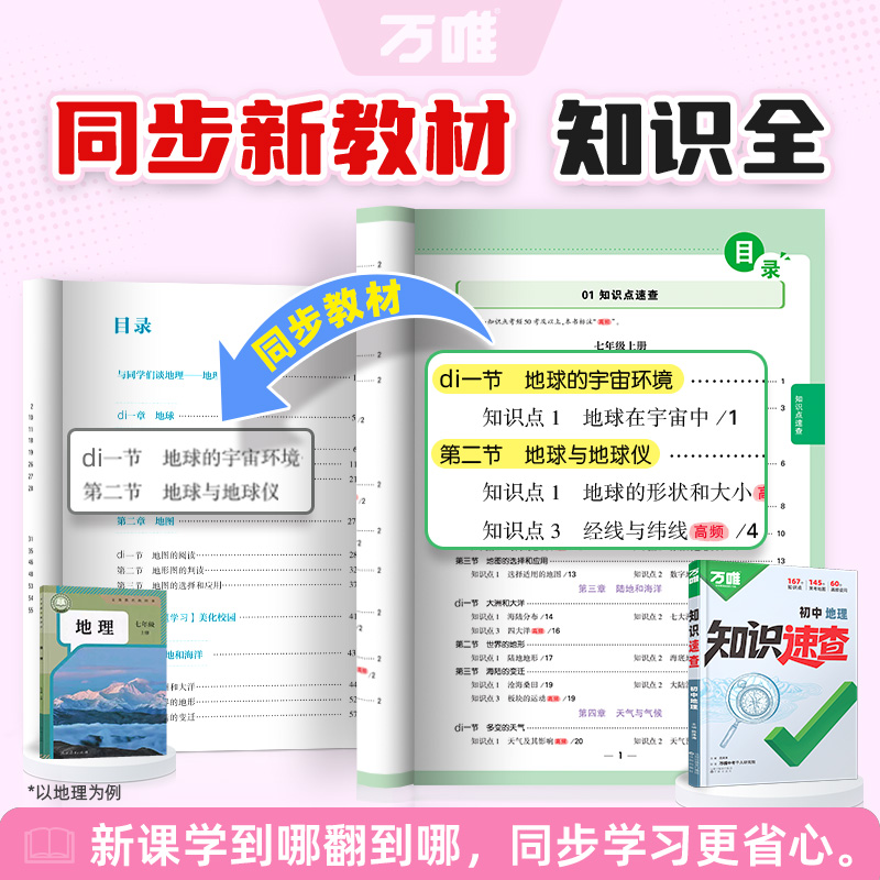 2026万唯中考知识速查初中小四门知识点快速定位速查必背清单人教版初一初二初三道法历史生物地理基础知识考点速记手册万维旗舰店