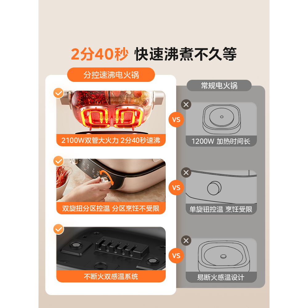美的速沸电火锅电锅家用鸳鸯锅分体式多功能电热锅火锅专用锅新款