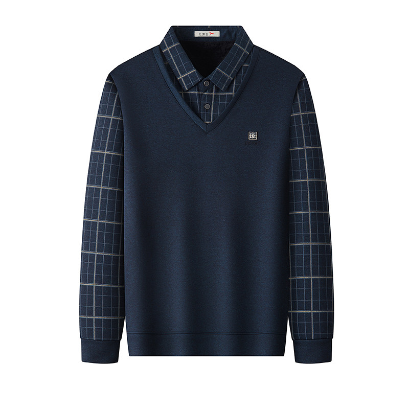 红蜻蜓男士假两件毛衣加绒加厚冬季新款休闲保暖中年爸爸装打底衫,