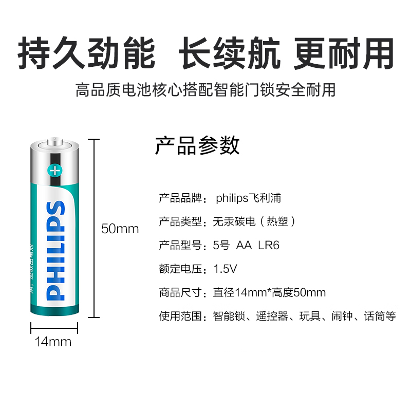 飞利浦智能门锁5号干电池4节电子锁专用碳性电池玩具鼠标遥控器。