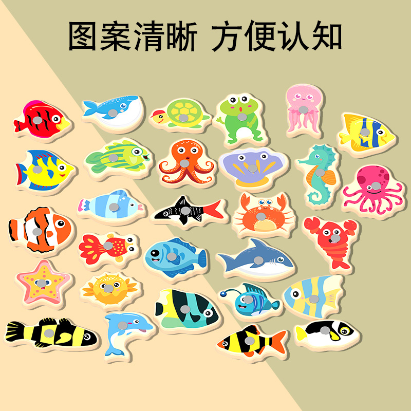 钓鱼玩具磁吸木质儿童1到3岁早教益智礼物开发大脑男孩女周岁宝宝