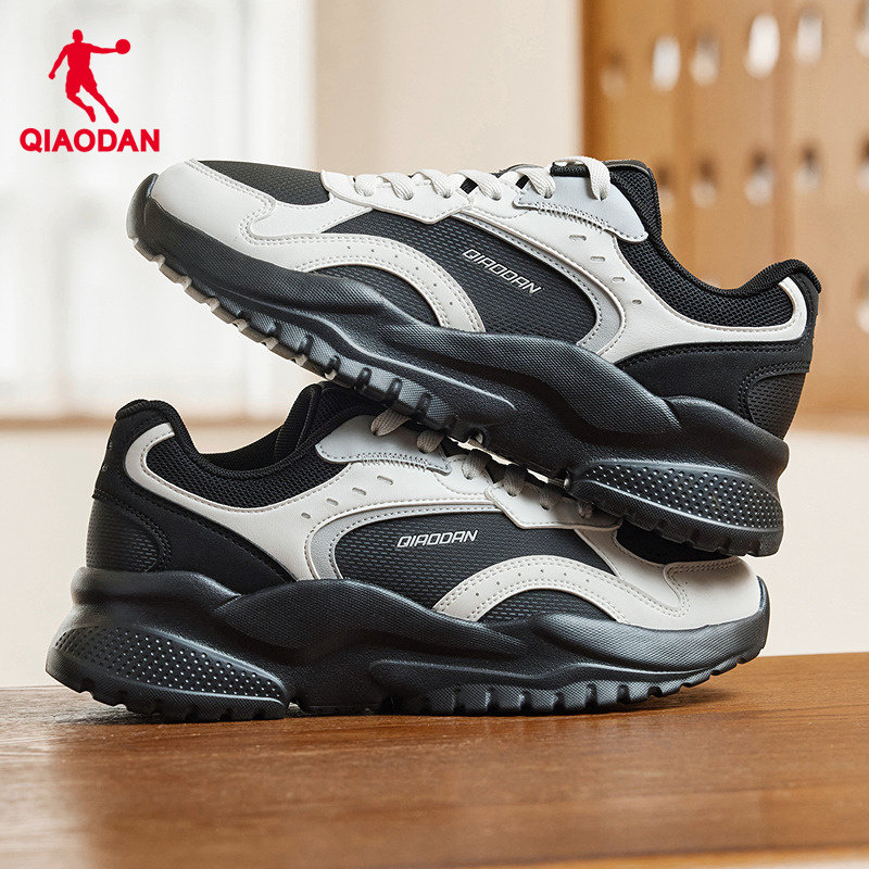 乔丹小千禧革面防水休闲鞋女2025冬季黑色老爹鞋厚底增高运动鞋子