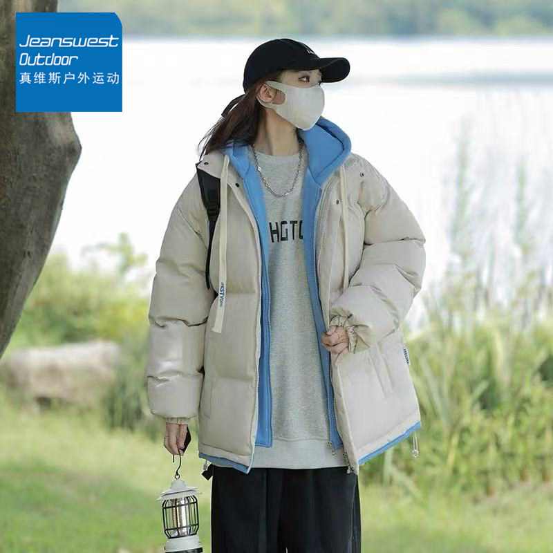 真维斯户外运动冬季新款情侣袄子宽松假两件港风潮流连帽面包外套