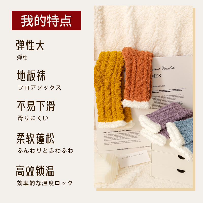 珊瑚绒袜子女秋冬季中筒袜女生冬天居家睡眠月子袜加绒加厚地板袜