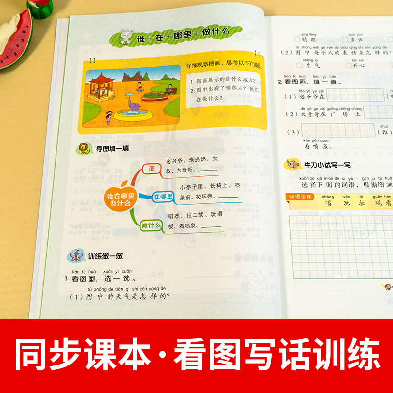 开心 看图写话一二年级上下册专项训练阅读理解训练每日一练三段式解答方法 思维导图训练 人教版范文练习册