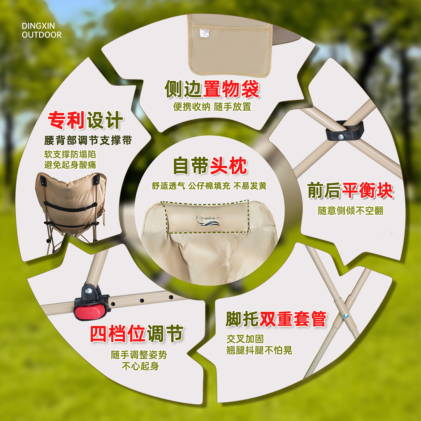 鼎新户外折叠椅办公室午休躺椅舒适加棉可调月亮椅便携式露营椅子