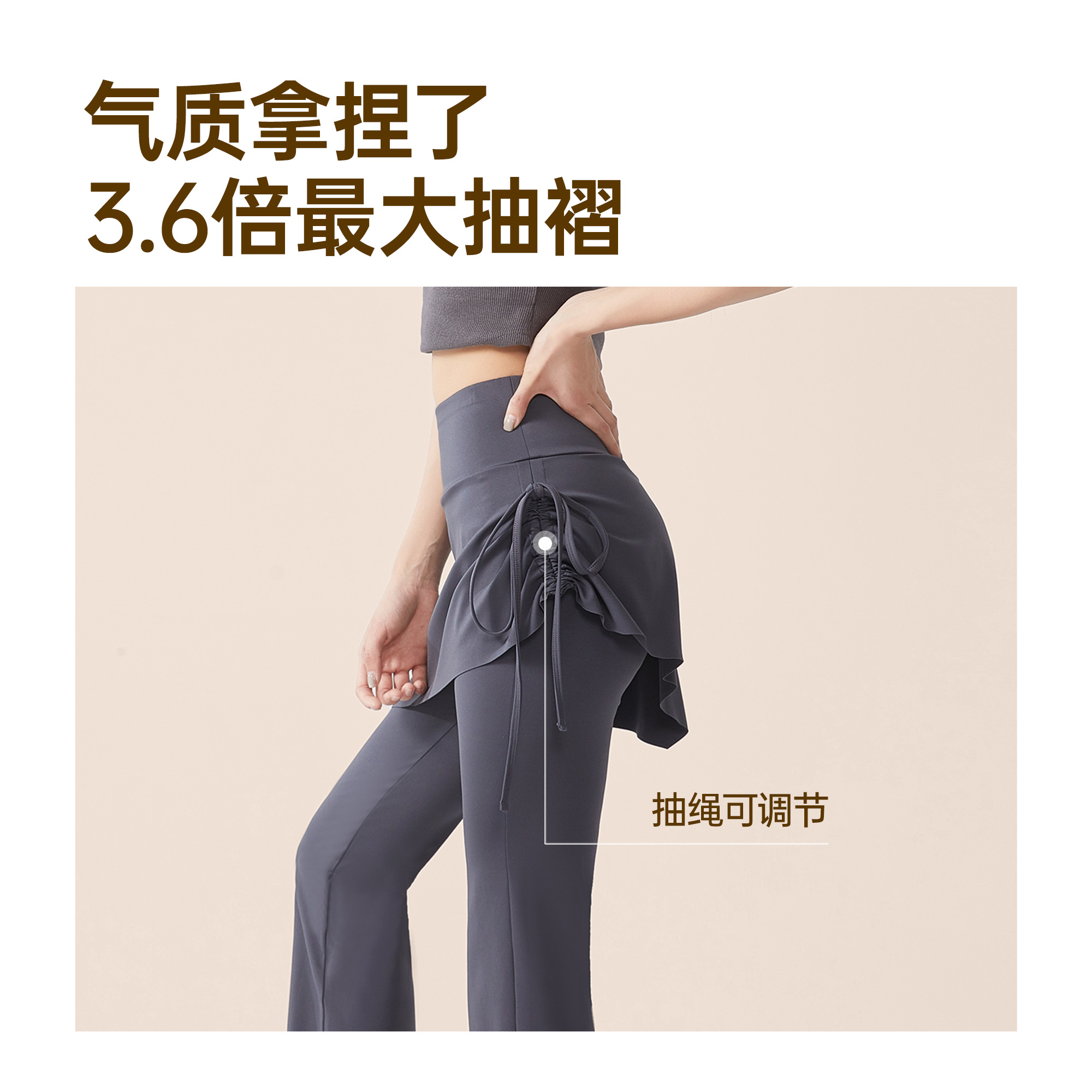 佑美假两件瑜伽裤女新款高腰收腹提臀裙裤防走光微喇普拉提健身裤