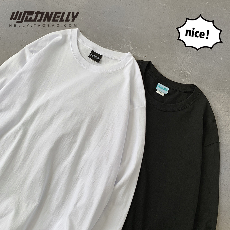 重磅纯棉t恤男女bf长袖纯色内搭体恤宽松上衣男士白色打底衫潮INS