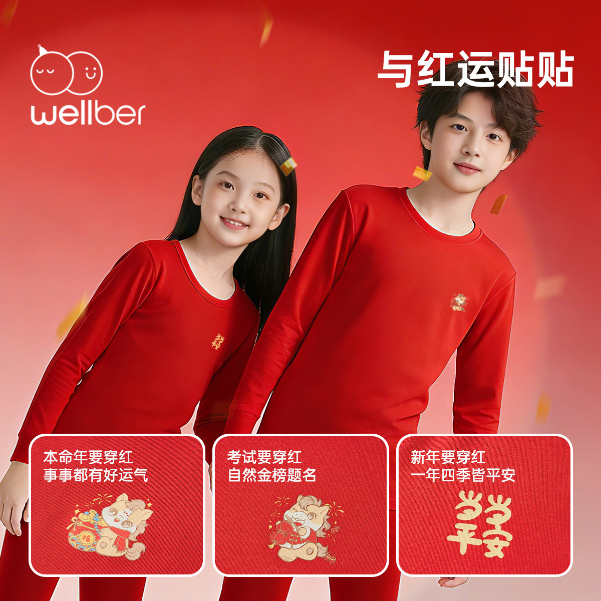 wellber旗舰店,威尔贝鲁成人儿童本命年内衣套装纯棉12岁中大童衣服红秋衣秋裤
