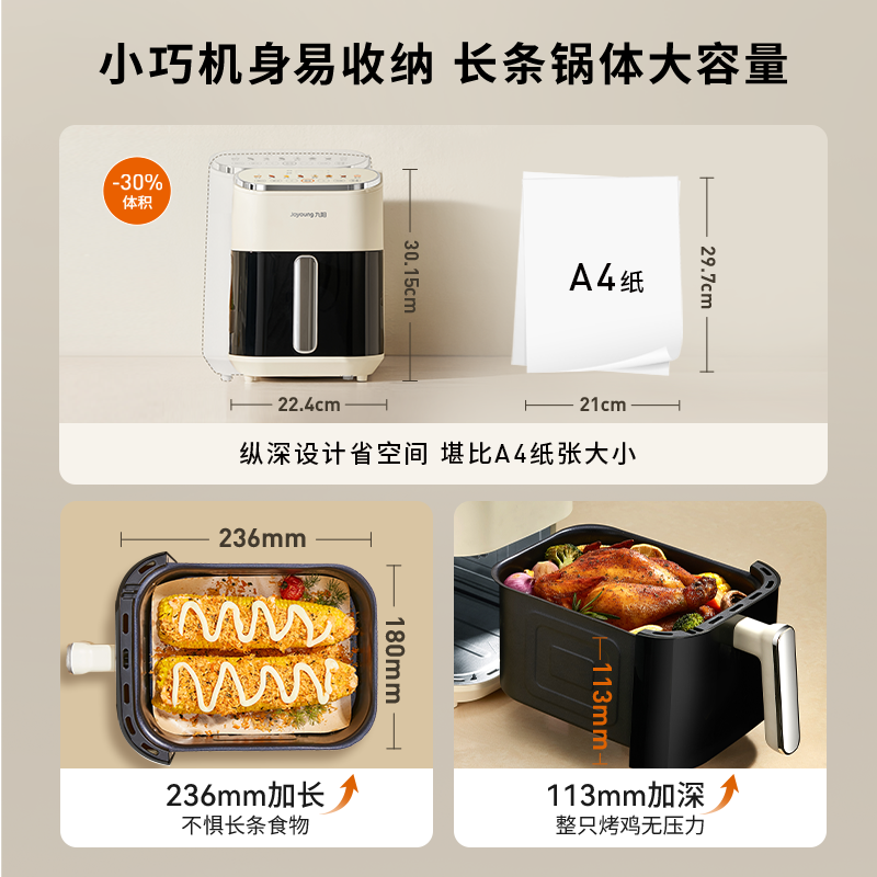 九阳空气炸锅家用新款大容量可视多功能烤箱一体空气电炸锅烹饪机,叠淘金币18.45+消费券200-25+国补到手174.74