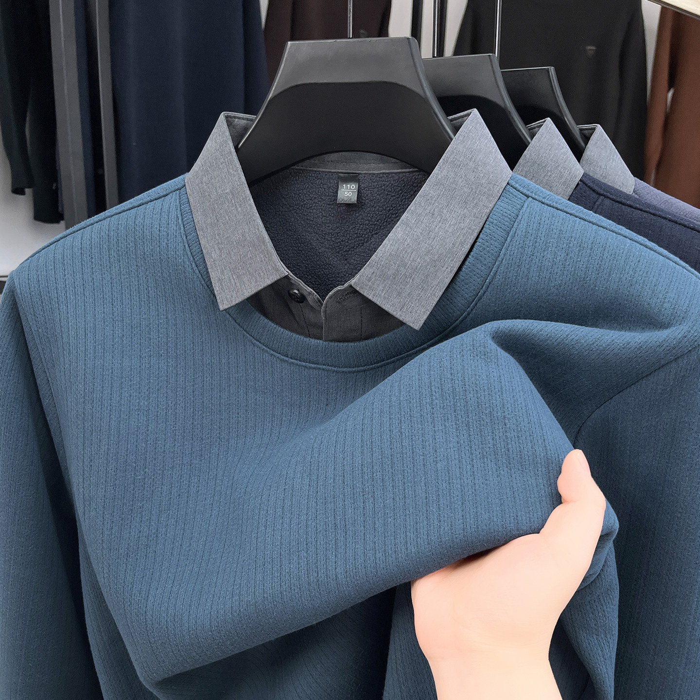 【红蜻蜓男士加绒假两件毛衣】厚实雪尼尔,不易变形,不易起球,耐穿易打理,无论是日常穿搭还是特殊场合,让您时刻感受高品质的穿着体验。