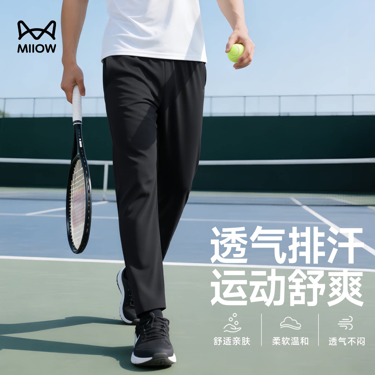 猫人直筒运动裤男士春季新款黑色长裤卫裤宽松青少年休闲裤子男生