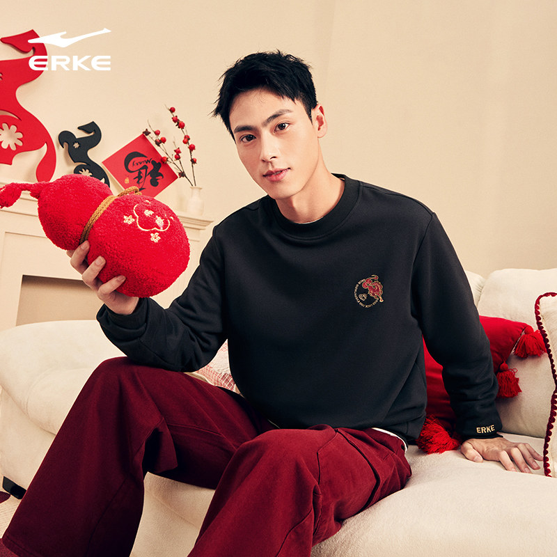 财马送福丨鸿星尔克加绒卫衣男女情侣新年马年本命年红色衣服上衣