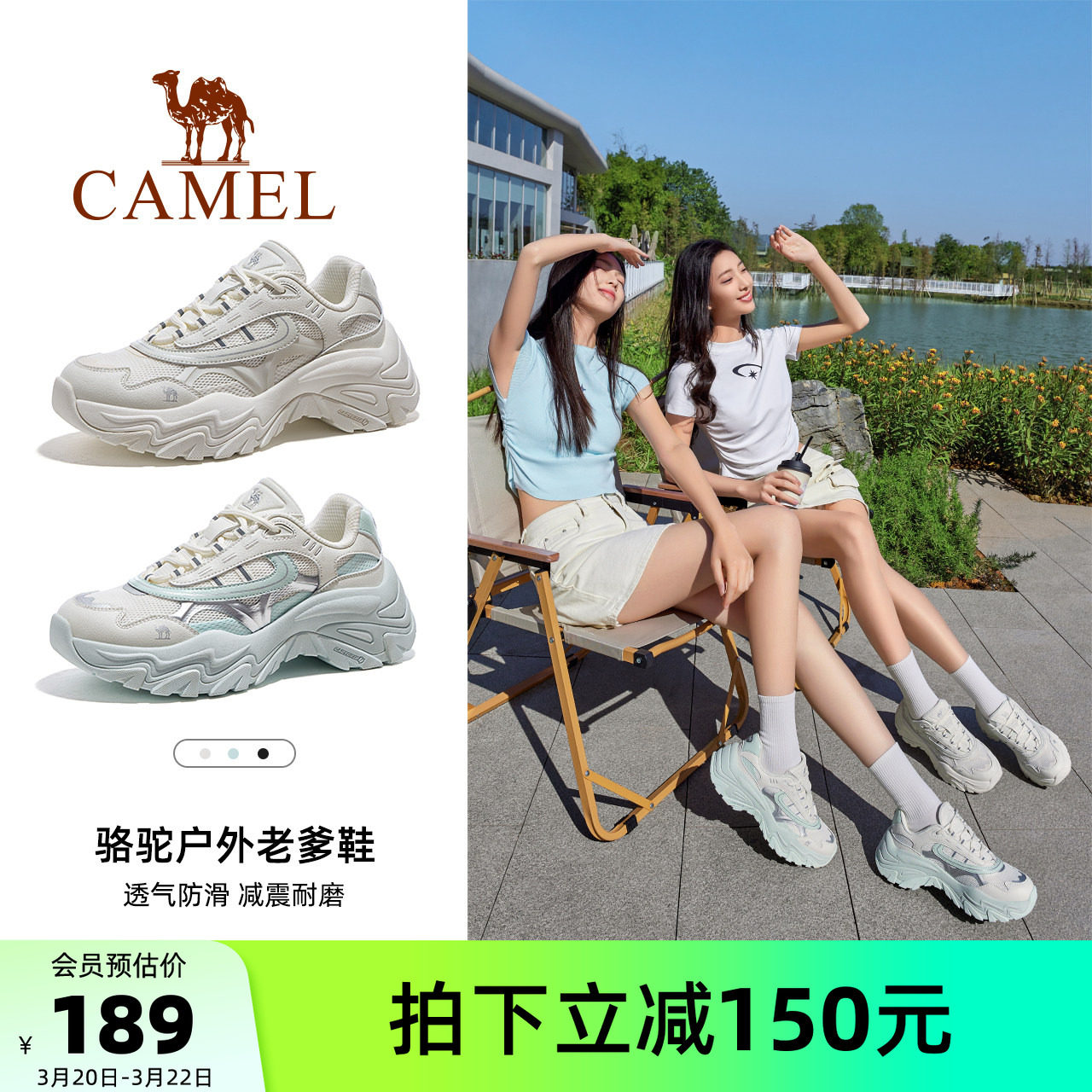 百搭款!鞋柜里必须要有一双!骆驼官方旗舰店•户外老爹鞋看图!右上角叠金币+淘礼金157.1亓,88vip148.1亓百搭款!可盐可甜颜值巨巨巨高流线形撞色+耐磨底盘舒适感拉满