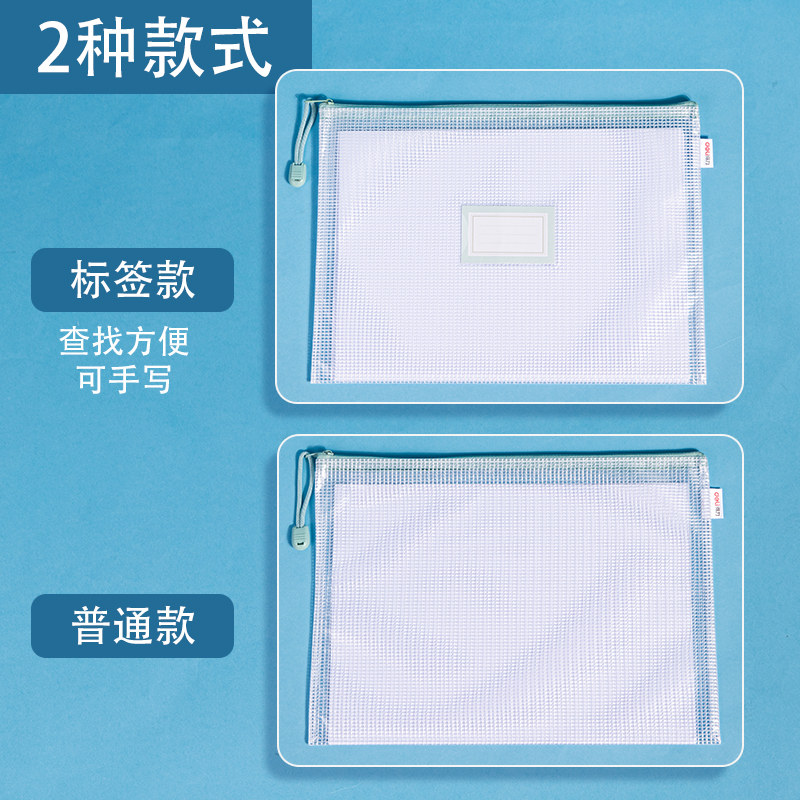 得力拉链袋文件袋学科袋学科分类收纳透明高中大学生用加厚防水档案科目试卷收纳装作业文具a4文件袋补习袋