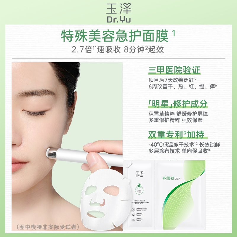 【叠加淘金币减2.19元,88vip到手21.7】玉泽积雪草安心修护面膜6片舒缓补水保湿,产品直击痛点:肌肤缺水、敏感泛红、换季不适,这些问题不再困扰您!我们的面膜采用天然积雪草提取物,为肌肤注入源源不断的水分和养分。